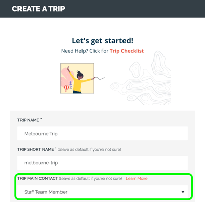 - You can change who is listed as the Contact on a Trip Page, but we do not recommend removing the Main Contact as that is who emails will be sent from for automated emails.