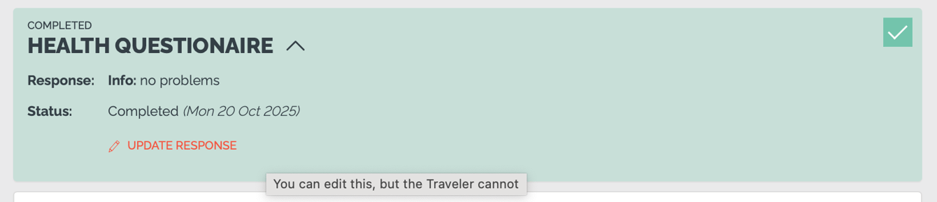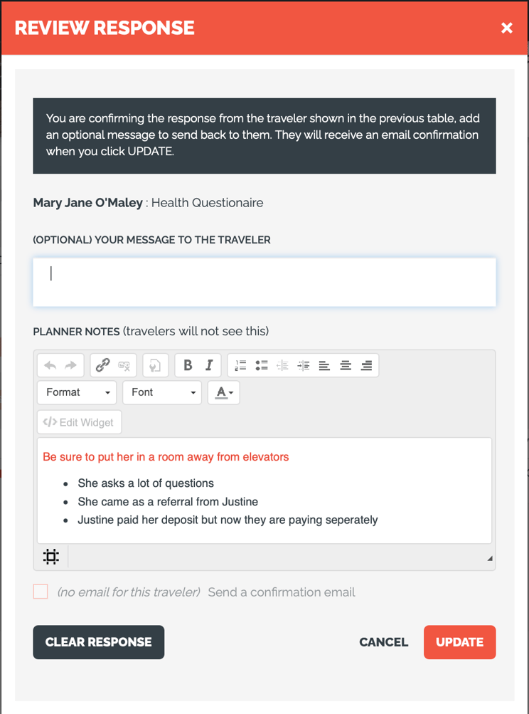 CAUTION: Travelers will not get an email if you clear the response, but they will get TASK REMINDERS and can see that it is no longer completed.