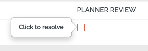 - You'll see the PLANNER REVIEW column with a checkbox. Click to resolve:
