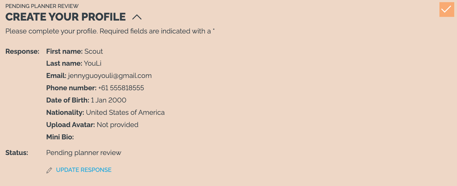 Once Travelers have completed the TASK, Planners will see PENDING REVIEW on any Task that requires review. They will then have the option to decline (CLEAR RESPONSE) or accept (UPDATE).