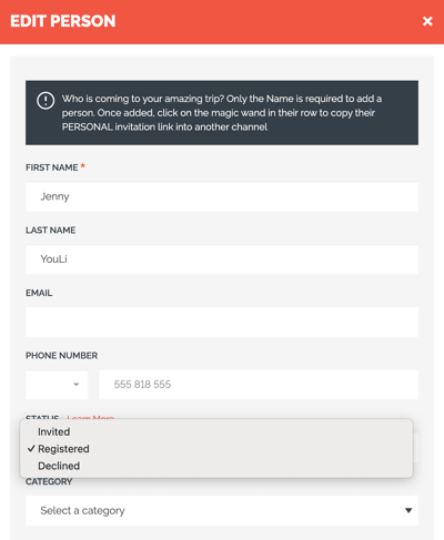 TIP: You can also edit the Status of a Traveler from their TripBoard