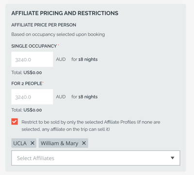 Link Affiliate Profiles to Trips - so only the linked Affiliates can sell the Trip with the Affiliate price.