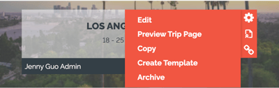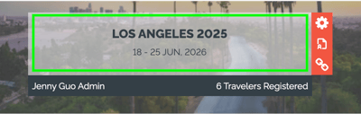 The default view shows all your Trips with their banner images. Hover over the cards to access the Actions.