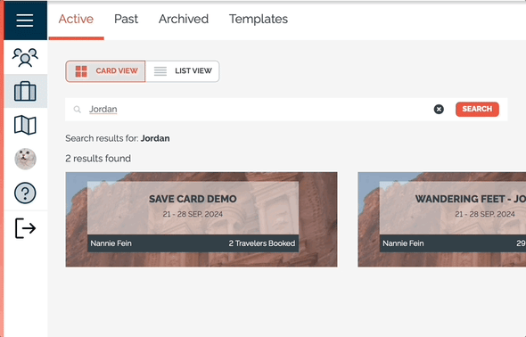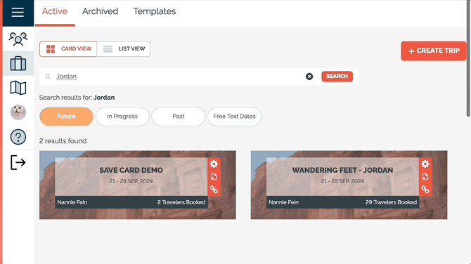 - SEARCH: Search for a name, email address, tag, and more to find the trip you are looking for