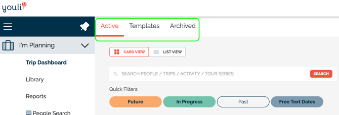 - ACTIVE: All Trips that you are currently working on will show here. This will include future Trips, in-progress Trips, and even past Trips