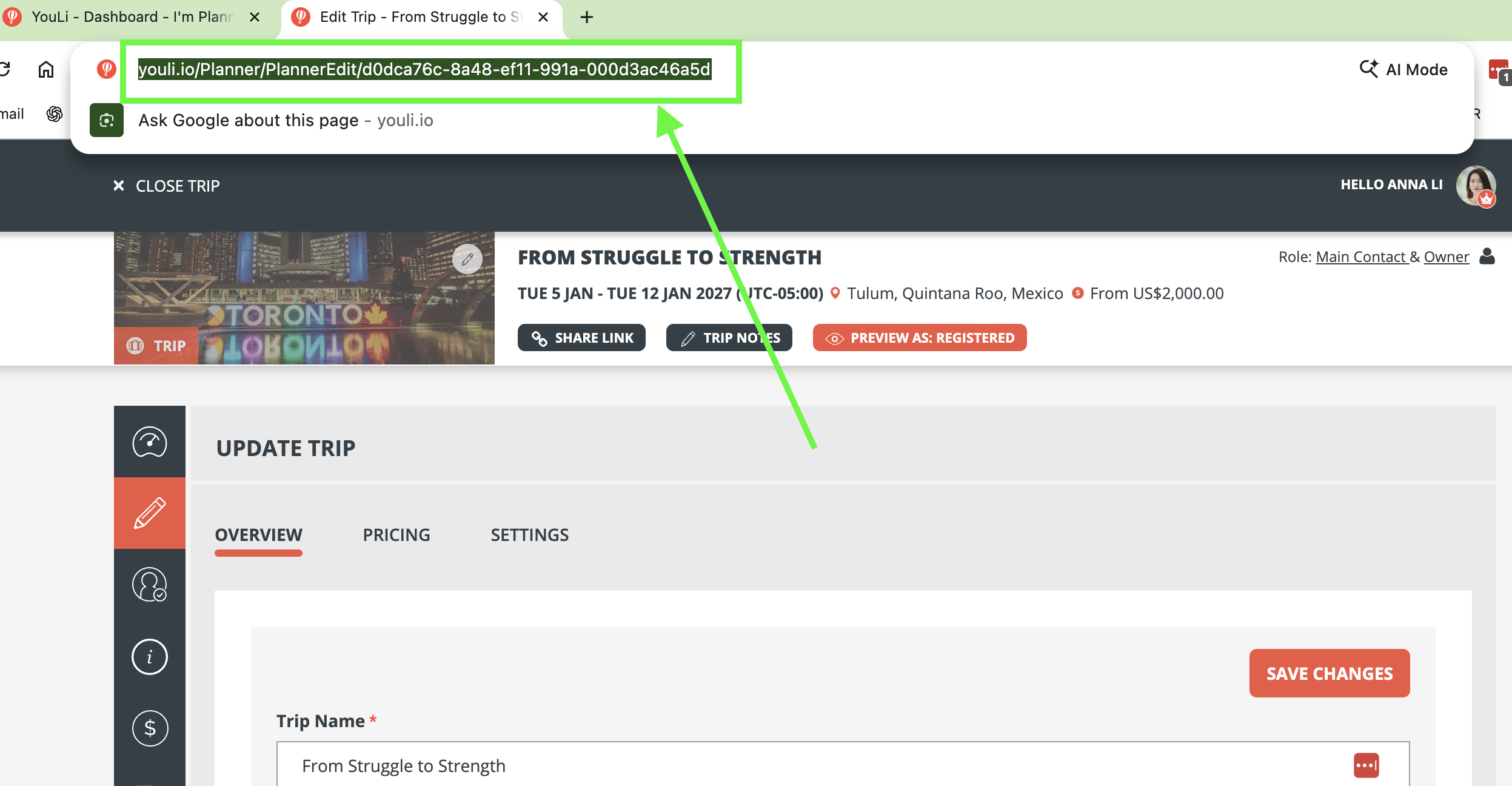 How-to: Share Trip Link For Socials or Book Now Button or for YouLi Support Troubleshooting