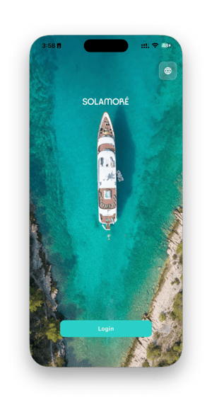 This example is Solamoré and showcases the brand color and splash image on the homescreen of the app plus the main screens in the app. Specifics will vary per trip, but these elements will be consistent.