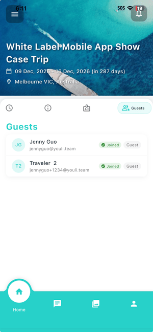 It will only appear when the traveler uses the same email address to join multiple trips. They can swipe left and right to view different trips.