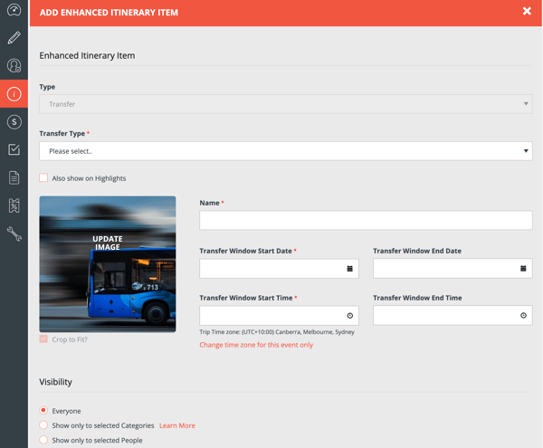 Transfer Window (Enhanced Itinerary Item) - is currently a sponsored feature. Contact Sales to get pricing for early access.
