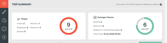 On Trip Summary, if there is an overbooked person, the circle will be flagged as red: